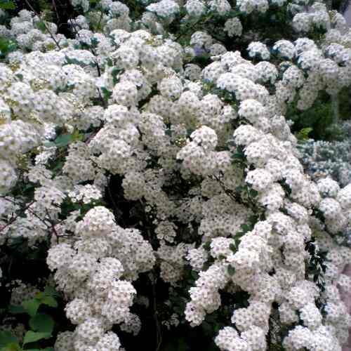 Цветение обычно начинается с середины мая или в начале летних месяцев. Продолжительность его составляет от двух до трех недель. Буйное цветение создает пышные белые шапки, из-за чего большинство побегов свисают, образуя дуги.
